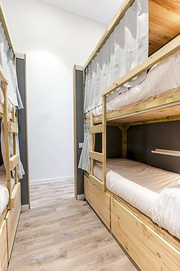 This spacious quadruple room has air conditioning and heating, free WiFi and a private bathroom. It features storage space below the bunks for suitcases and personal belongings. There is also a small living room.